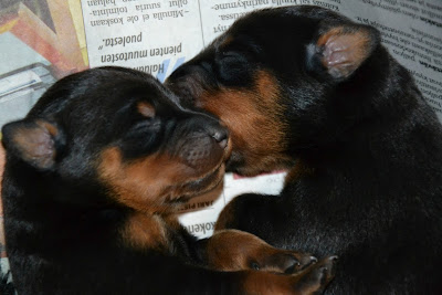 Seminaarin jälkeen ajoin pentujen luokse Kirkkonummelle. Voi, että ne oli suloisia ja kasvaneet viikossa lisää. Nyt ne jo kävelivät, leikkivät, murisivat ja haukkuivat. Annoimme niille jauhelihaa syötäväksi ja sehän niille maistui. Pääsivät vielä olohuoneeseen pomppimaan. Lauantai-ilta hurahti nopeasti pentujen touhuja seuratessa ja niitä valokuvatessa.